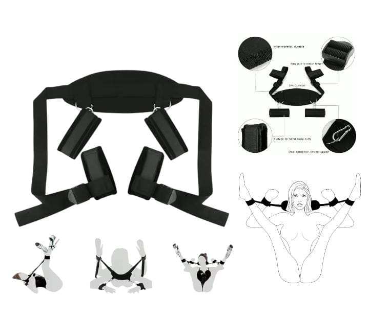 Sistema de sujeción ajustable diseñado para intensificar el juego y ampliar las posibilidades en tus momentos íntimos. Cuenta con correas resistentes, acolchados cómodos para muñecas y tobillos, y ajustes firmes que brindan seguridad y estabilidad durante su uso.
